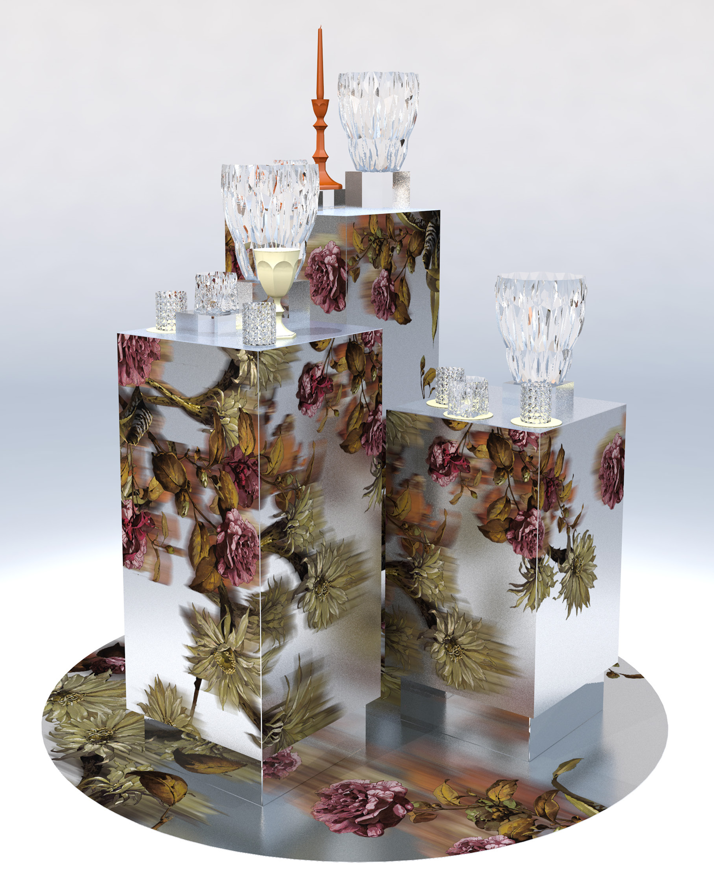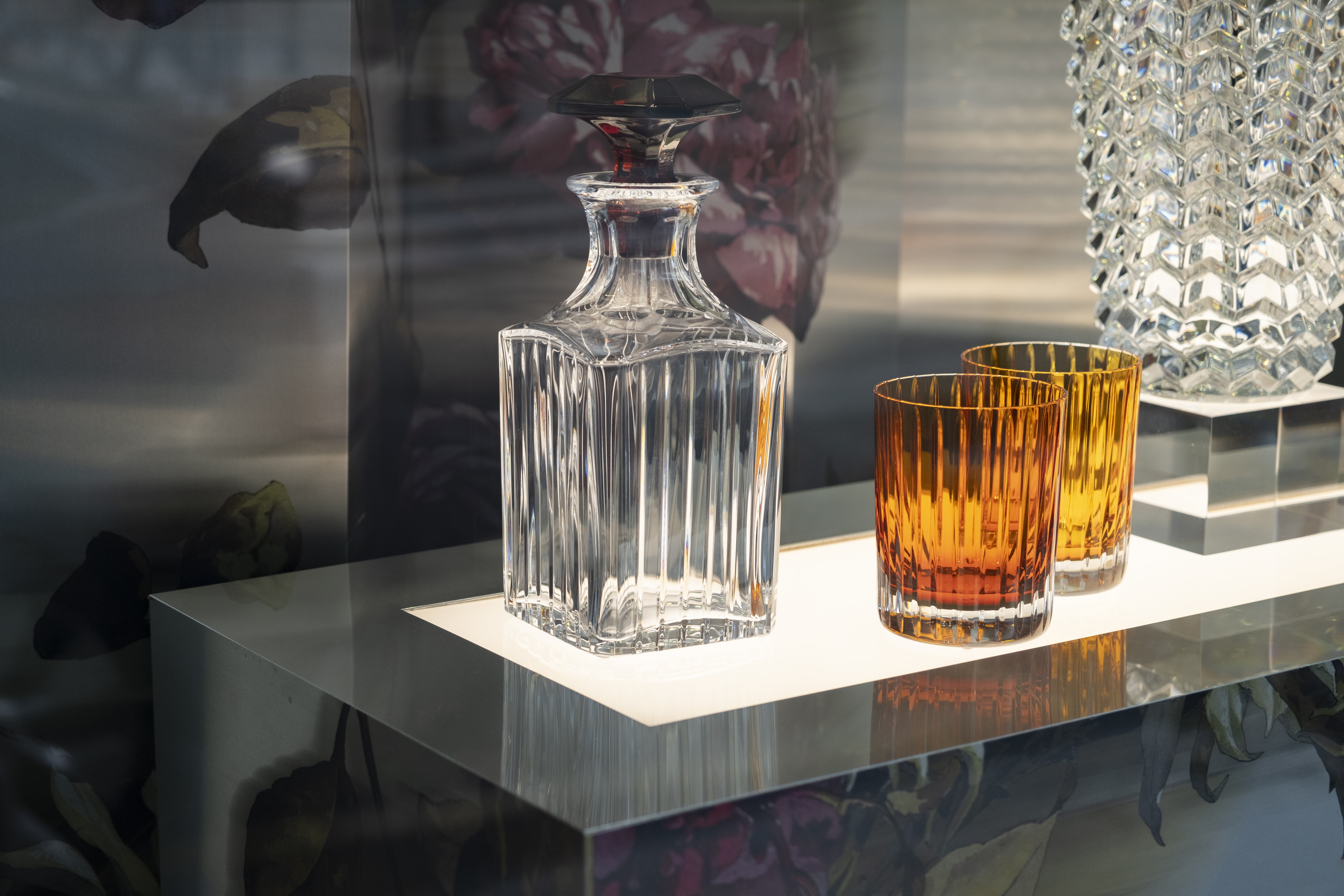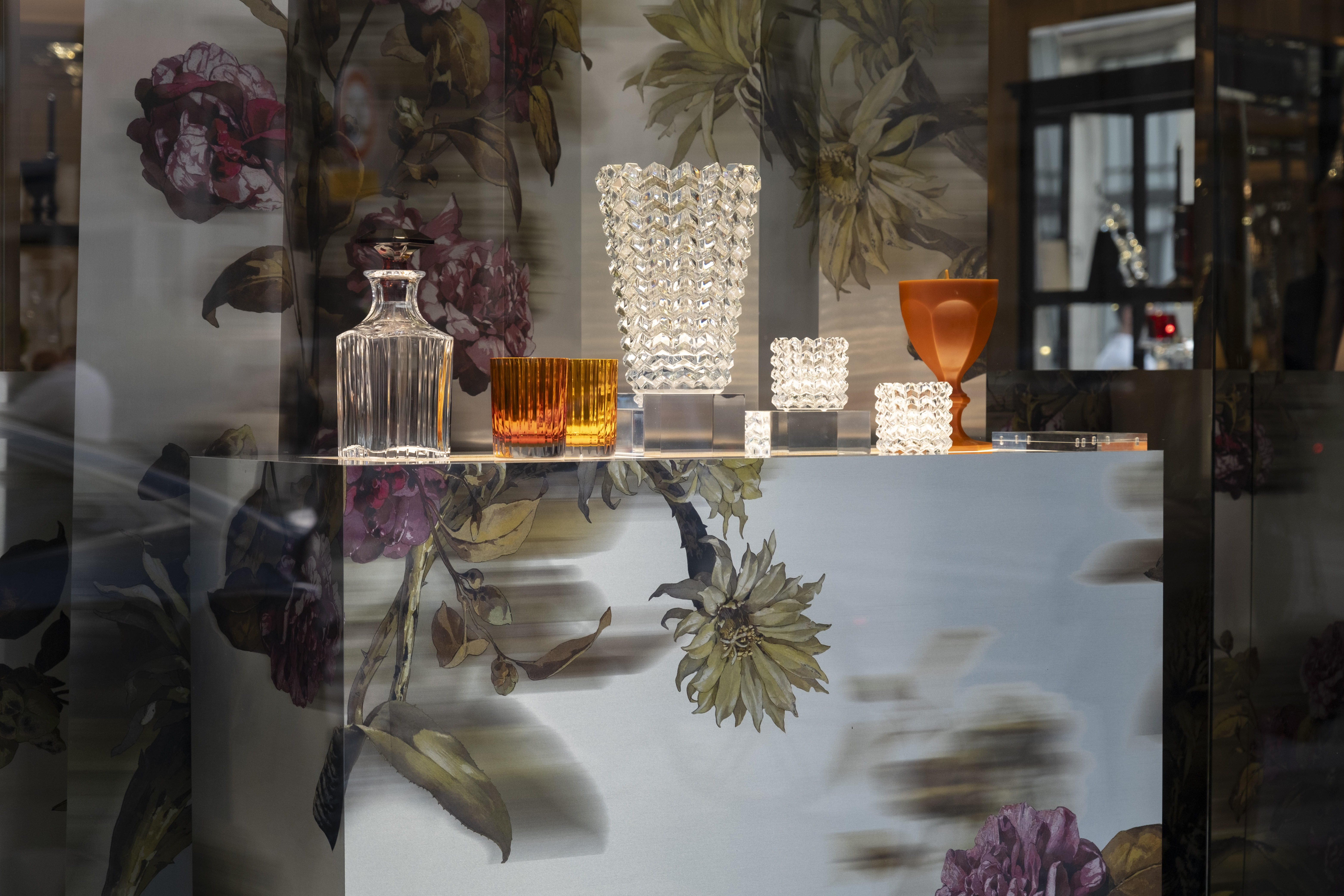Nous avons conçu et réalisé la vitrine et l'aménagement de l'espace en magasin, où l'inspiration florale rencontre le savoir-faire cristallin et l'élégance intemporelle de Baccarat.