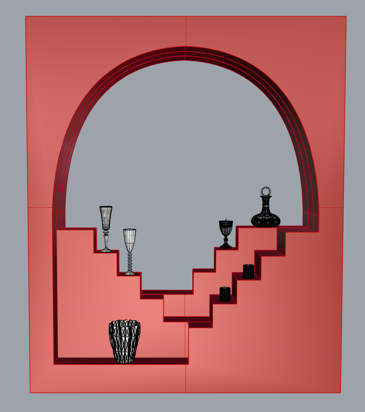 Nous avons conçu et réalisé une scénographie composée de structures et de supports laqués recouverts de moiré.