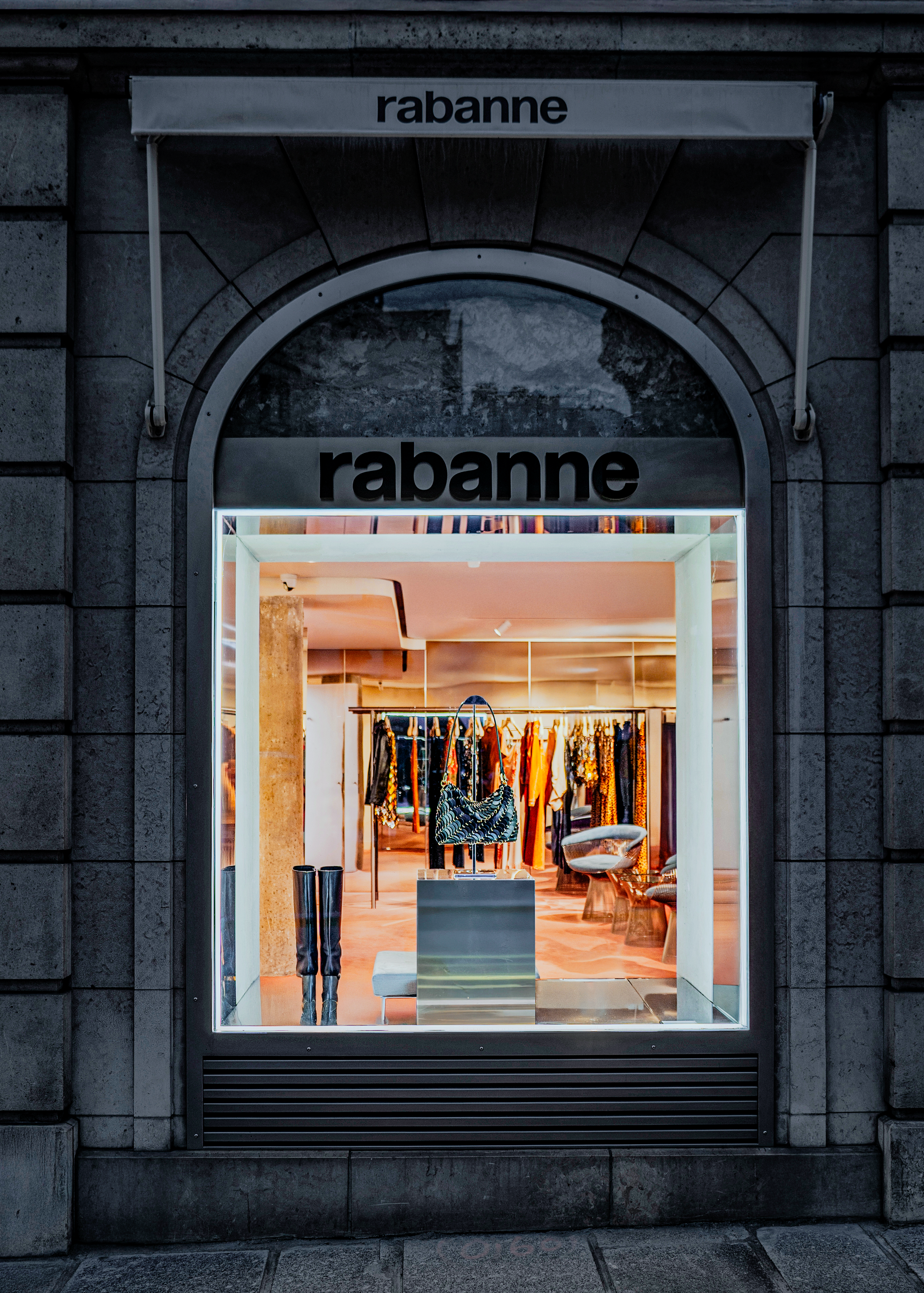 Mêlant glamour futuriste et précision architecturale, l’installation fait écho à l’esthétique signature de Rabanne : opulente, anticonformiste et résolument moderne.